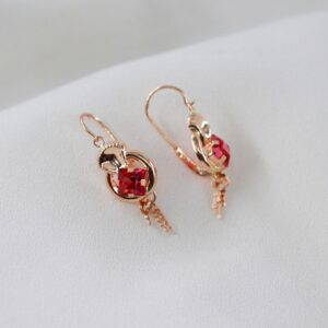 Brincos Gancho Pedra Rosa Ouro 19.2Kt