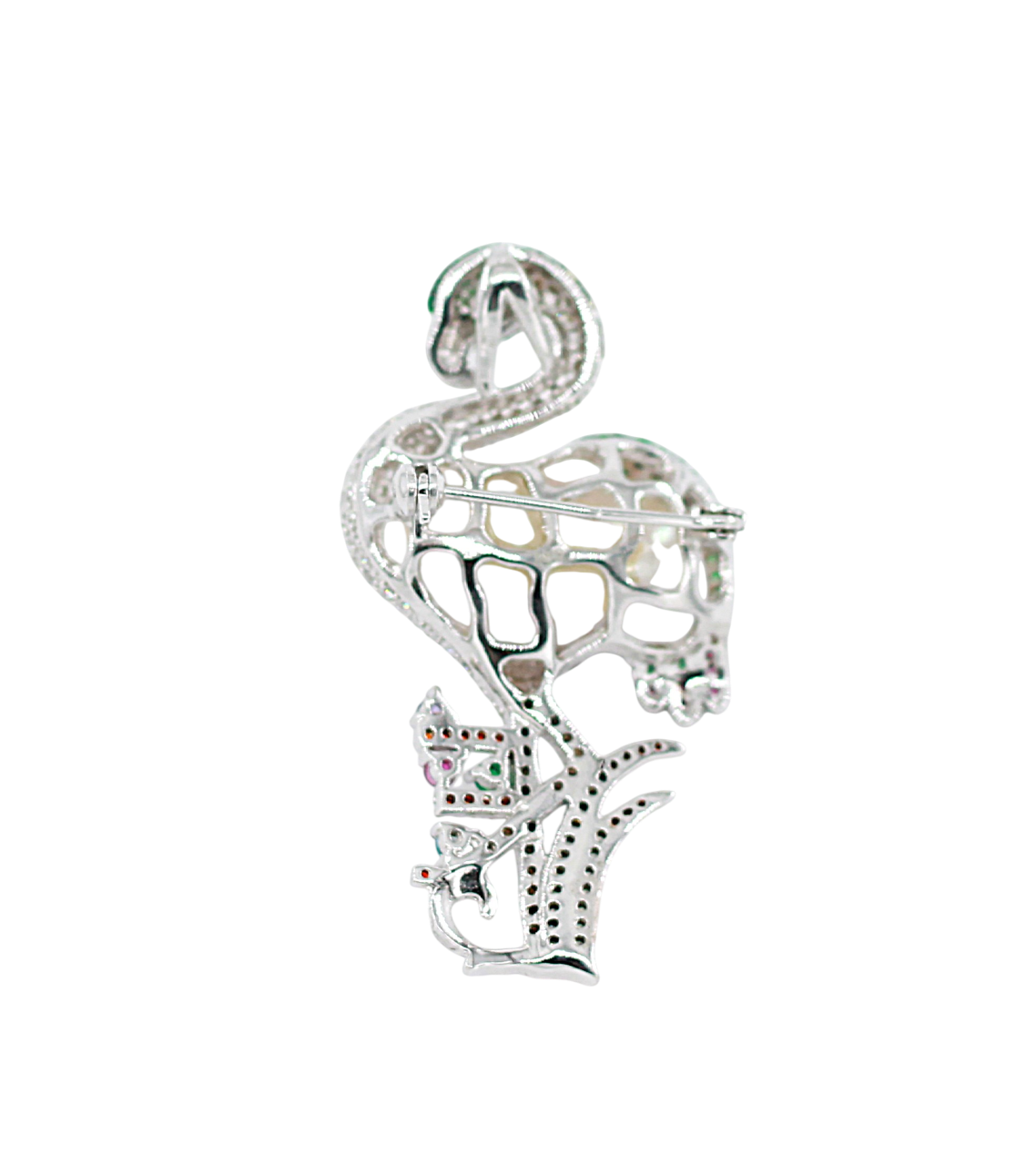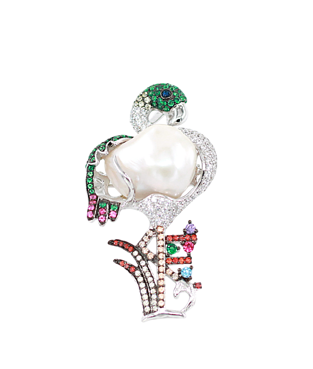 Alfinete Prata 925% Flamingo Zircónias Coloridas pérola