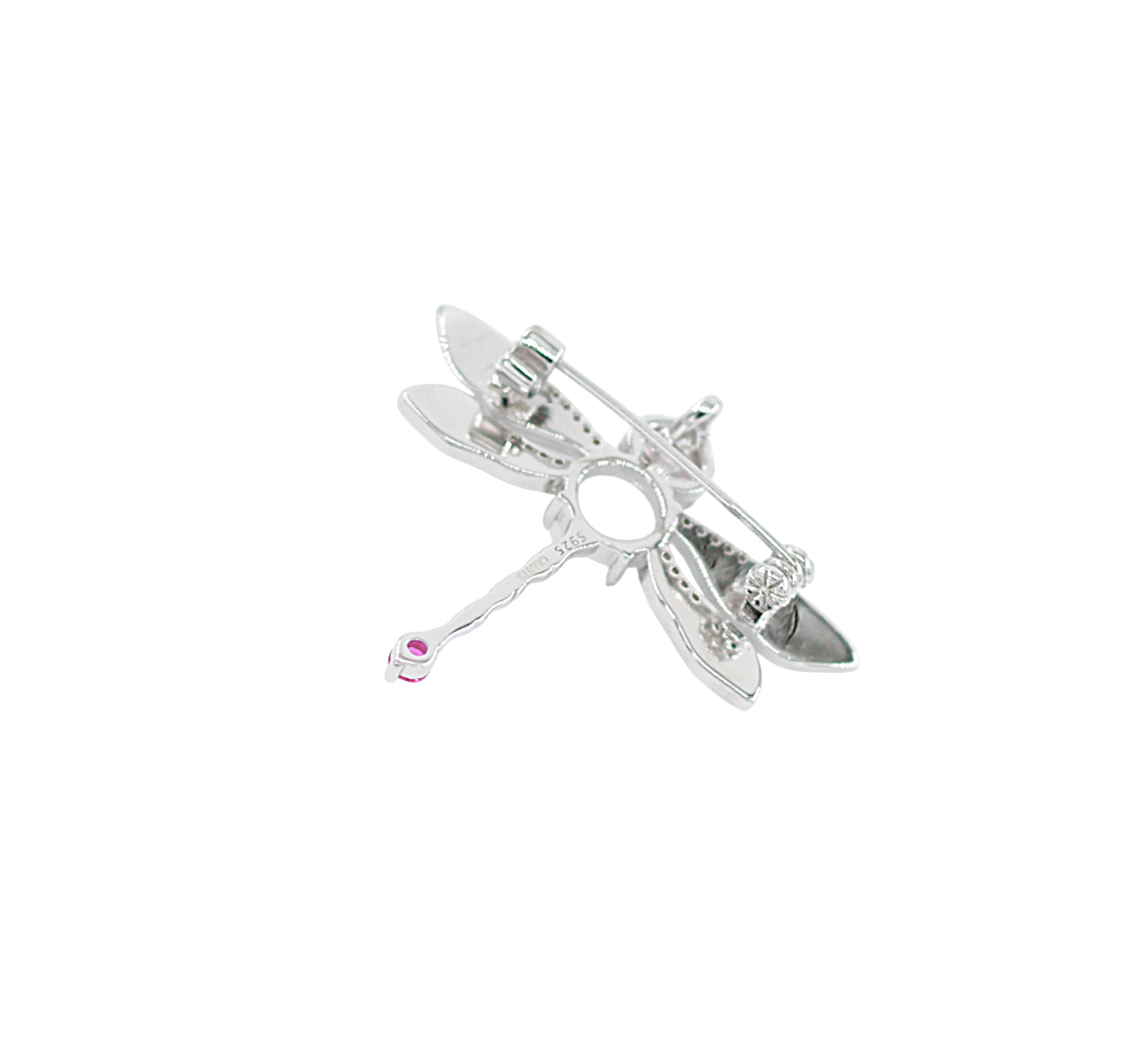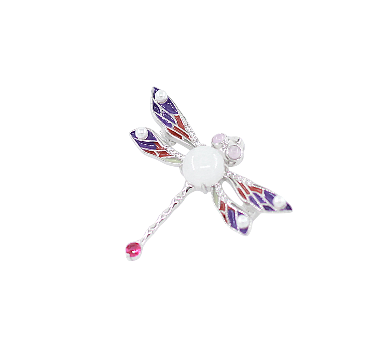 Alfinete Prata 925% Libelinha Esmalte Pedras e Pérolas