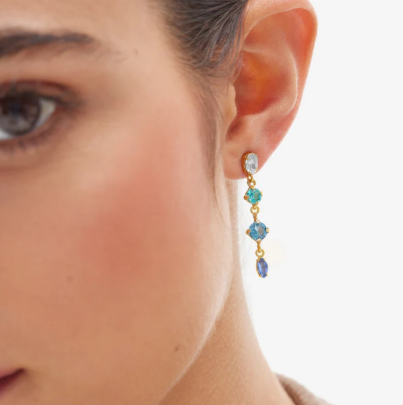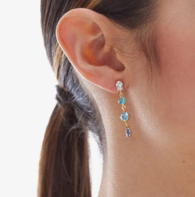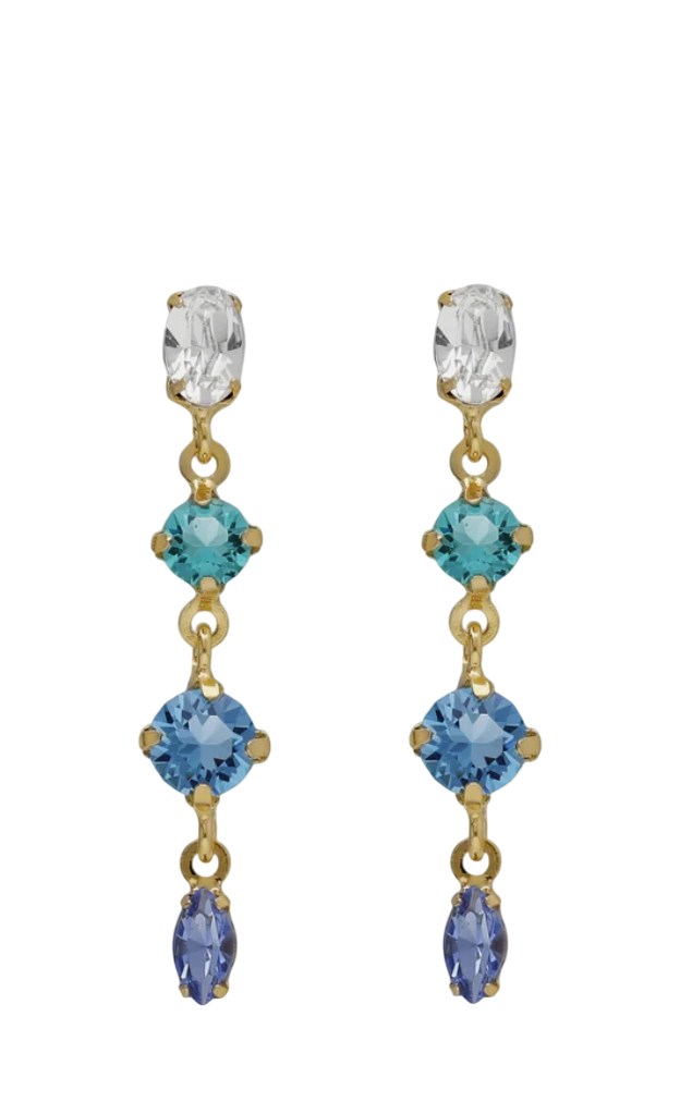 Brincos Prata Dourada 925 Cristais swarovski Azuis