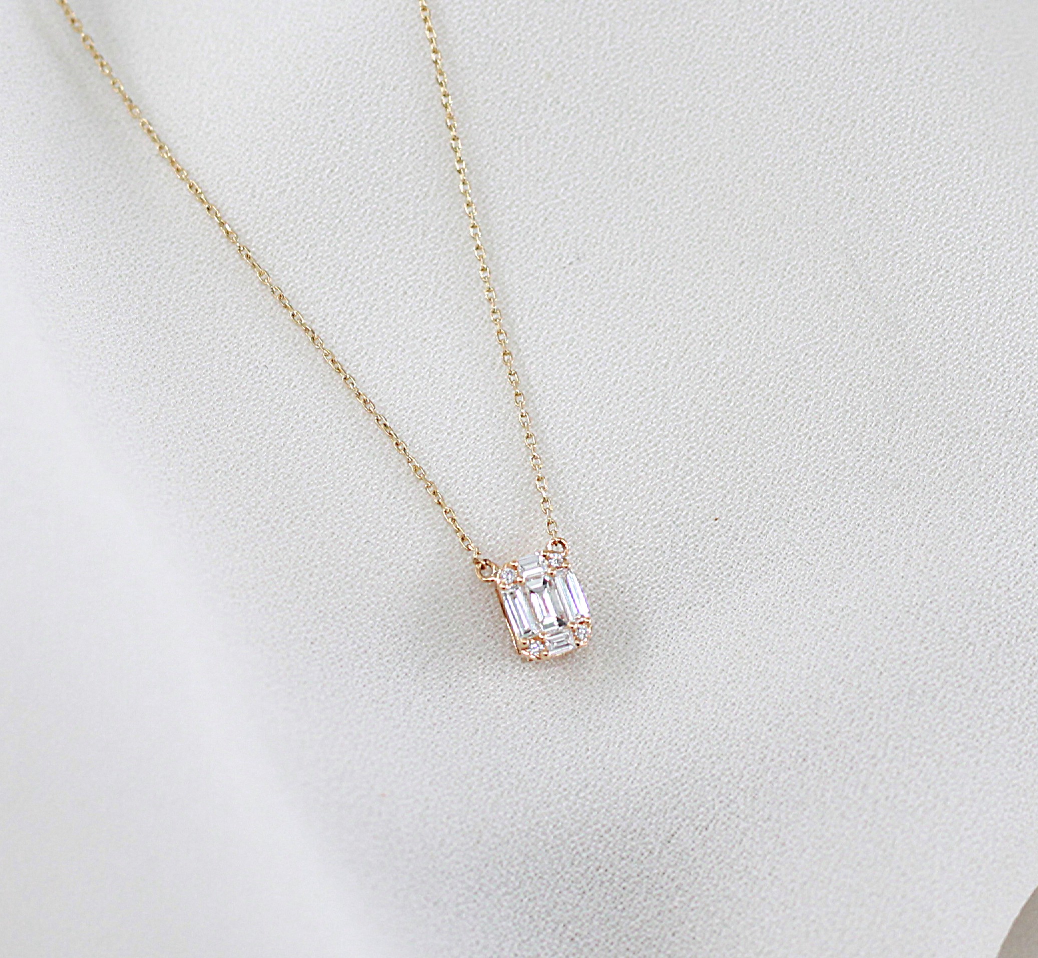 Colar Ouro 19.2kt Diamantes Baguetes 0.36cts