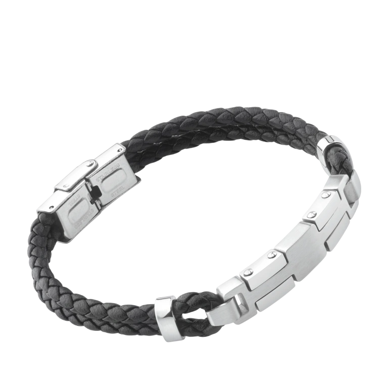 Pulseira Aço Hassu Couro Preto Centro Chapa