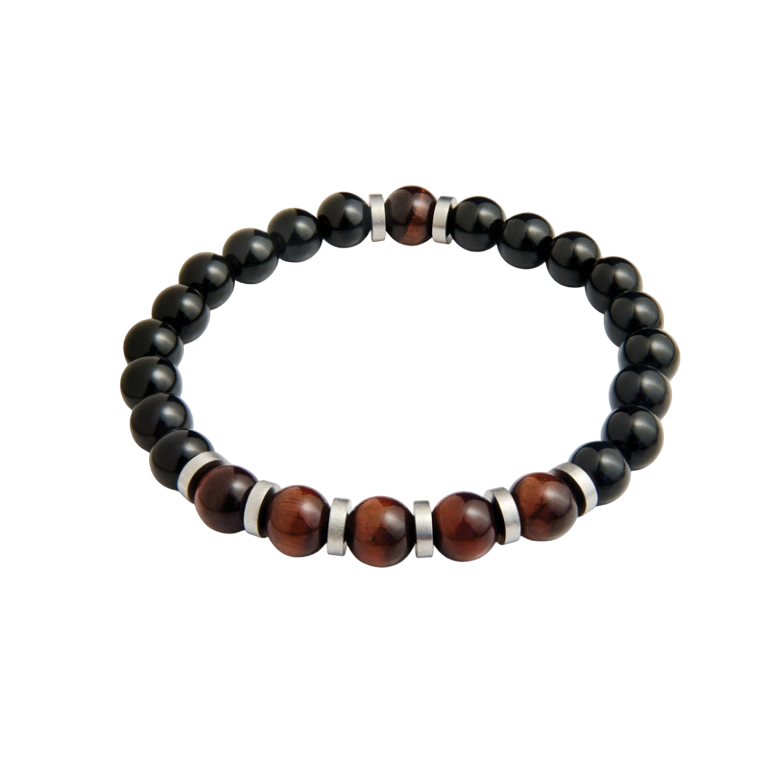 Pulseira Aço Hassu Pedras Naturais Pretas + Castanhas