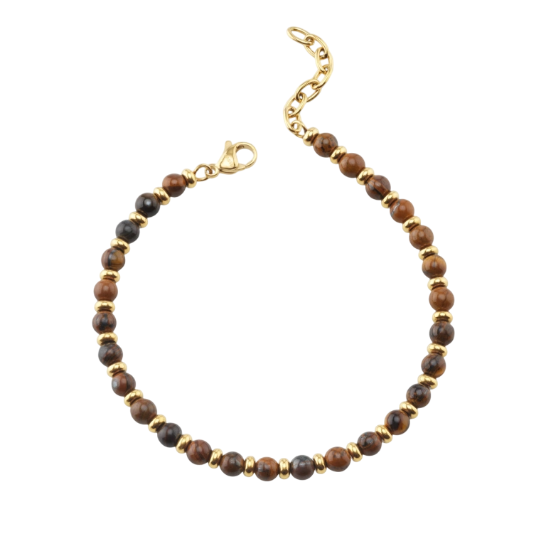 Pulseira Aço Hassu Pedras Naturais Castanhas