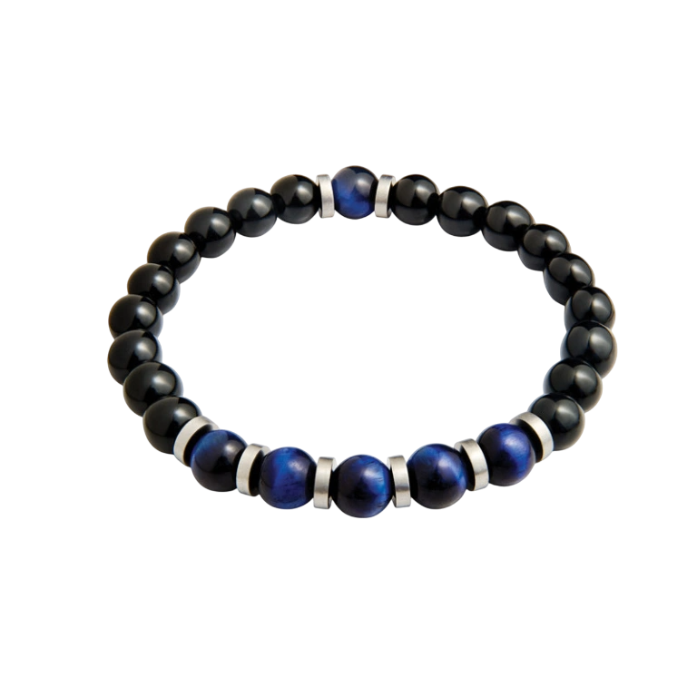 Pulseira Aço Hassu Pedras Naturais Pretas+Azuis