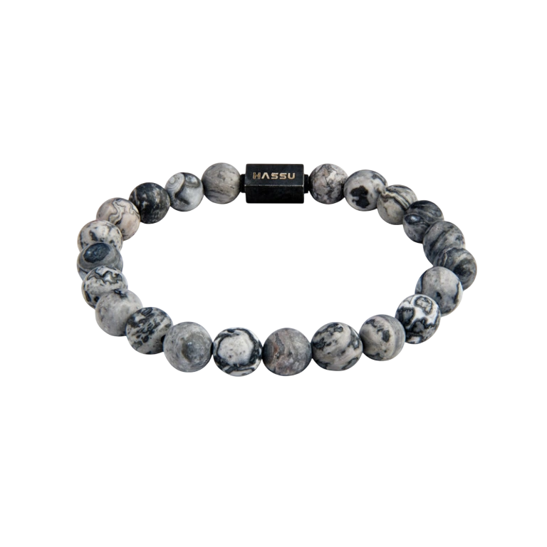 Pulseira Aço Hassu Pedras Naturais Cinzentas
