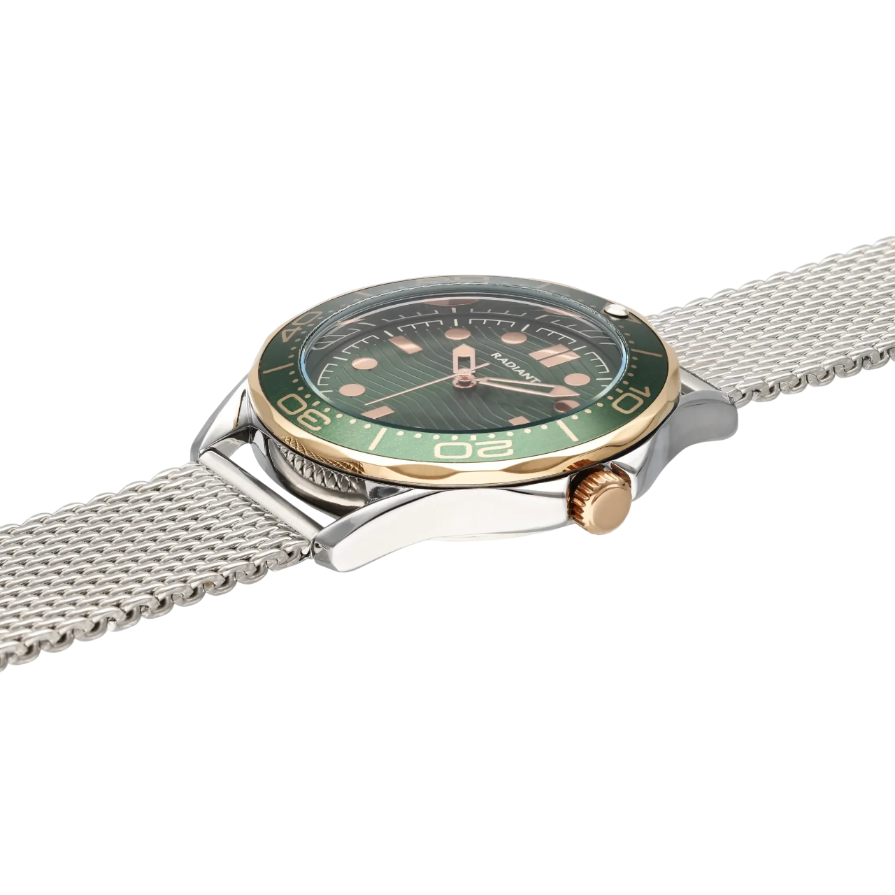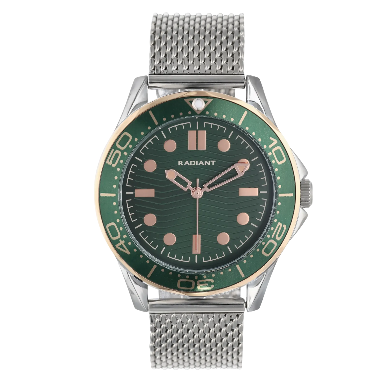 Relogio Radiant Fundo Verde Aco Rose Gold Milanesa