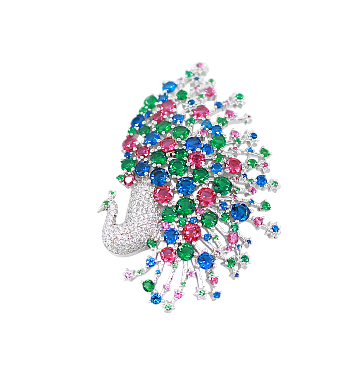 Alfinete Prata 925% Pavão Zircónias Coloridas