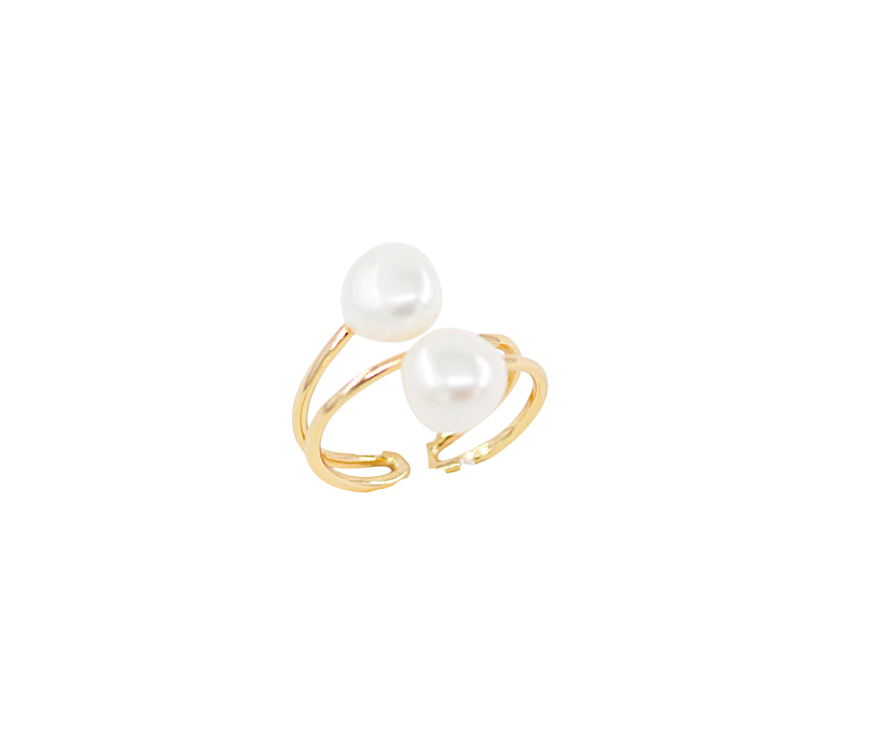 Anel Ajustável Prata Dourada 925‰ 2Pérolas