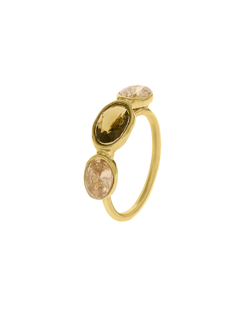 Anel Memória em prata de lei, banho de ouro com quartzos em tons castanhos. Há uma magia que só acontece quando o mundo lá fora arrefece. Cada detalhe da joia reflete a essência do inverno: delicada, mas imponente, como a estação que transforma o mundo num cenário introspectivo. Escolhemos a calma – e, acima de tudo, a presença.