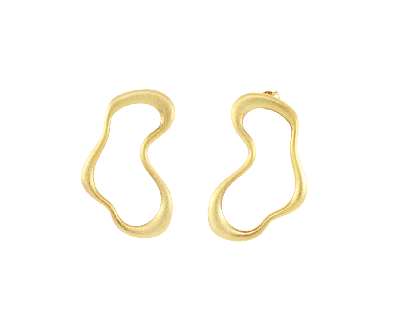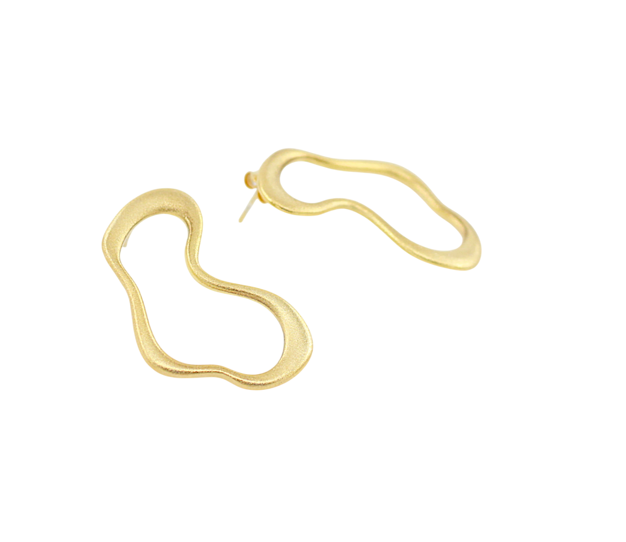Destaque seu estilo com este par de brincos dourados, com um design exclusivo e moderno inspirado em formas orgânicas.