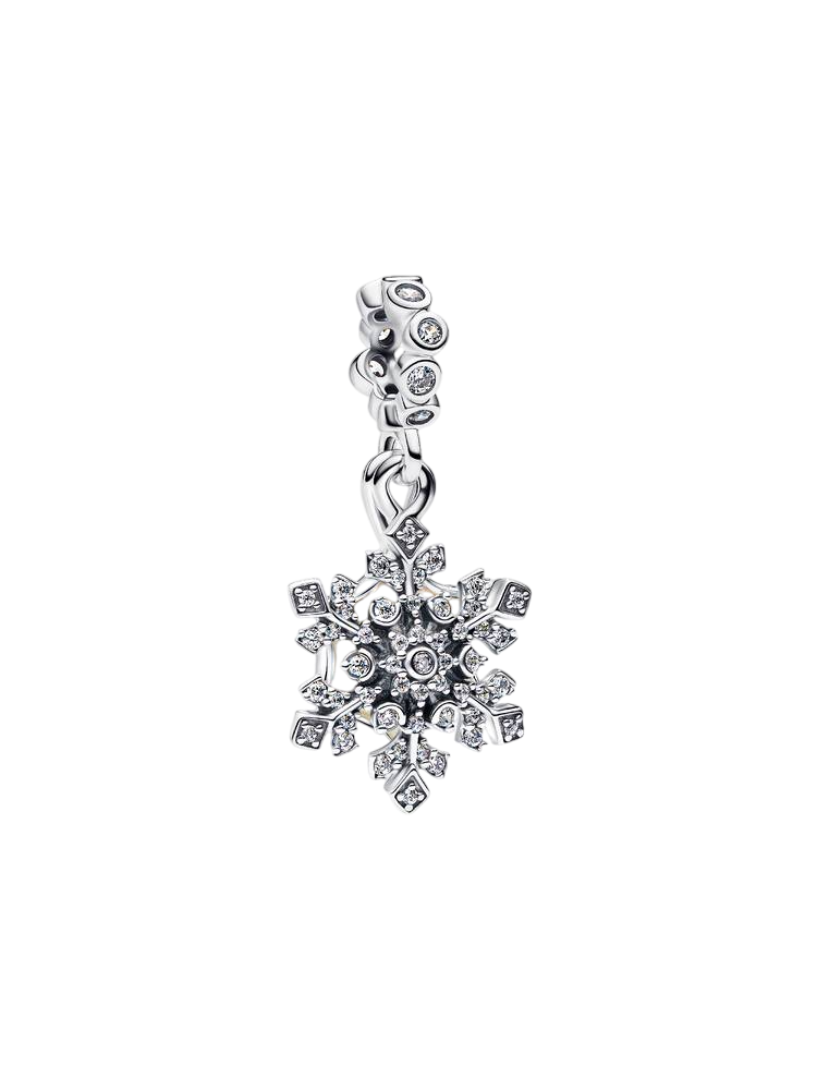 Use as maravilhas de Inverno em prata. Esta conta combina um floco de neve brilhante com uma estrela cintilante, com resina opala aurora criada em laboratório de um lado e a inscrição “I MELT FOR YOU” do outro.