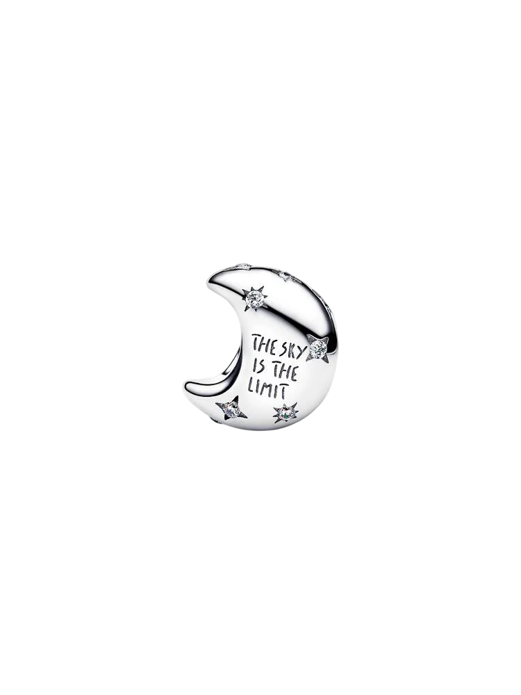 Aponte para o céu com a Conta Lua Crescente. Em prata e com pedras de cravação inglesa numa explosão estelar, tem gravado “THE SKY IS THE LIMIT” – para se lembrar de sonhar em grande e ir mais além.
