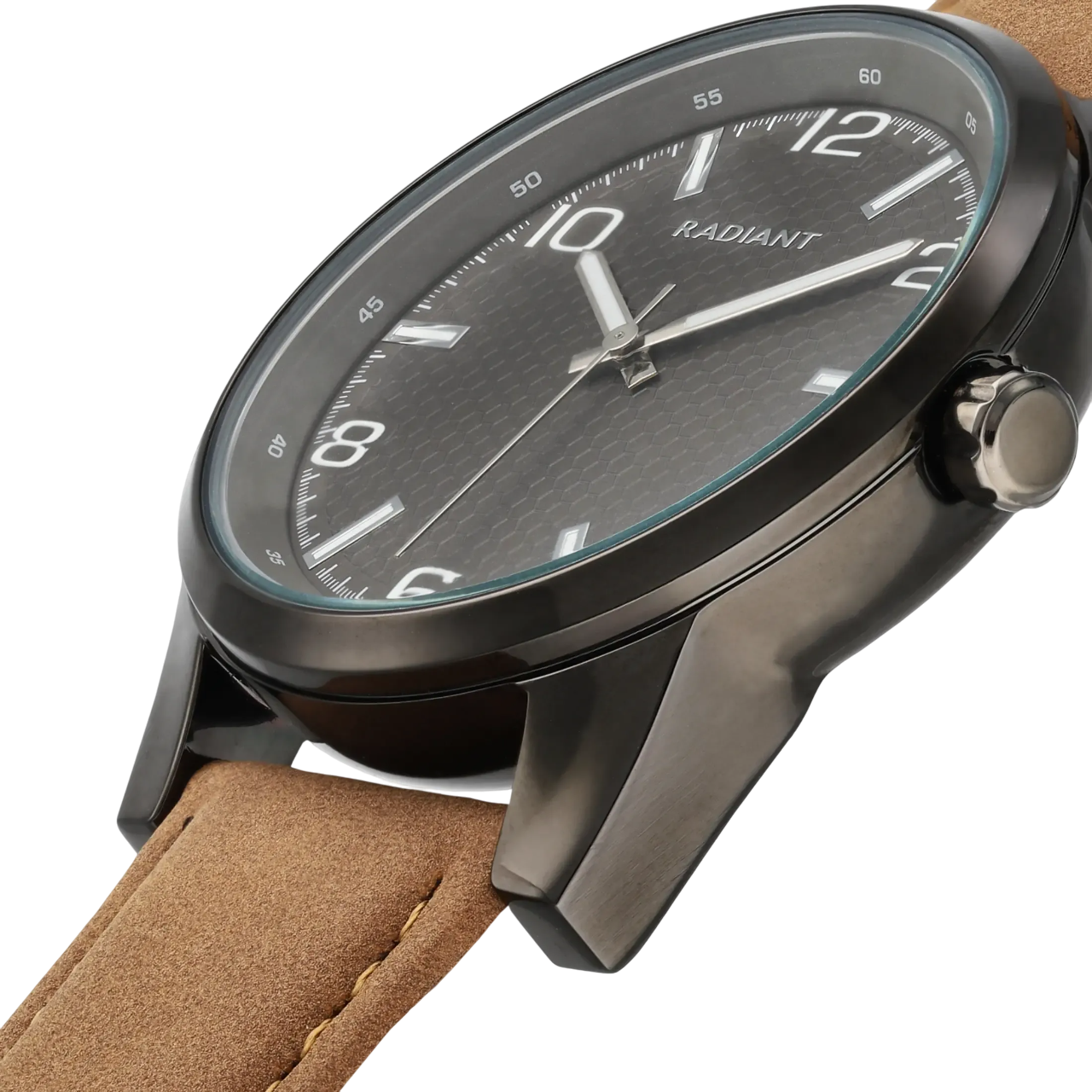 O relógio cinzento da coleção Jacobs é perfeito para quem valoriza um design minimalista, sóbrio e com carácter. A sua caixa metálica com acabamento cinzento escuro confere-lhe uma estética técnica e minimalista, enquanto o mostrador preto com padrão texturizado reforça a sua personalidade. Os marcadores brancos e o contraste com os ponteiros asseguram uma excelente legibilidade. A bracelete castanha escura, fabricada em pele vegan, acrescenta um toque de calor visual que suaviza a sua imagem estruturada. Este relógio preto para homem, equipado com movimento TM VJ21, foi desenhado para oferecer precisão e estilo no dia-a-dia. É ideal para quem procura um relógio funcional com detalhes refinados, adequado para contextos urbanos, profissionais ou estilos mais sóbrios. Um relógio elegante para homem que combina discrição, design responsável e utilidade.