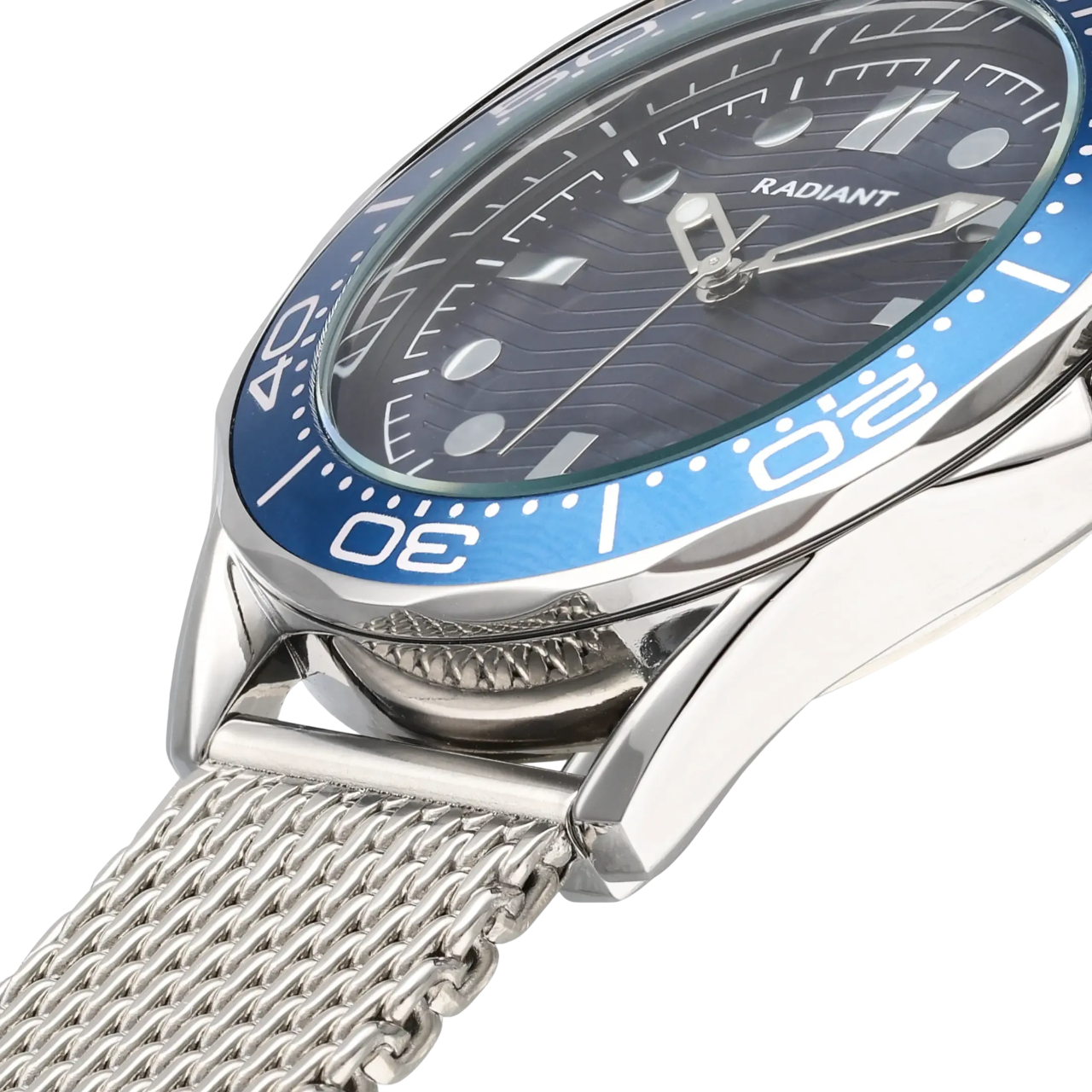 A coleção Chris é pensada para homens que valorizam a combinação de um estilo desportivo com uma execução elegante. A sua caixa de 42 mm transmite força e presença, ideal para pulsos masculinos que procuram um acessório sólido e sofisticado. O bisel giratório em azul marinho profundo confere personalidade sem perder a sobriedade, enquanto o mostrador azul com marcadores luminosos garante uma leitura ótima em qualquer situação. A bracelete de malha milanesa em aço adiciona um toque contemporâneo e assegura um ajuste confortável ao pulso. Este relógio azul masculino incorpora o movimento de quartzo Miyota 2035, que garante precisão e fiabilidade. É um relógio pensado para homens que valorizam a funcionalidade sem abdicar do design. Quer para looks casuais, náuticos ou de escritório descontraído, o modelo Chris azul adapta-se com facilidade. Perfeito para quem procura um relógio elegante masculino com um design potente e intemporal.